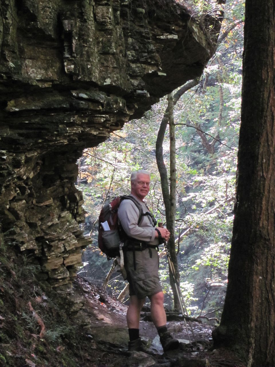There are many trails within South Cumberland. We chose Fiery Gizzard since the trailhead was only about 3 miles from the Visitor Center. Fiery Gizzard is a linear trial of about 13 miles. We didn’t have a second car to run a shuttle nor did we want to hike 26 miles, so we opted to take Fiery Gizzard into the gorge 1.5 miles to the Dog Hole Trail. Dog Hole climbes out of the gorge and runs along the rim on the plateau for 2.8 miles before intersecting with Fiery Gizzard where it comes out of the gorge. For our return to the trailhead, we took Fiery Gizzard back into the gorge for the 4.6 miles walk to the car. Of course, we had to climb out of the gorge one more time to the parking lot.